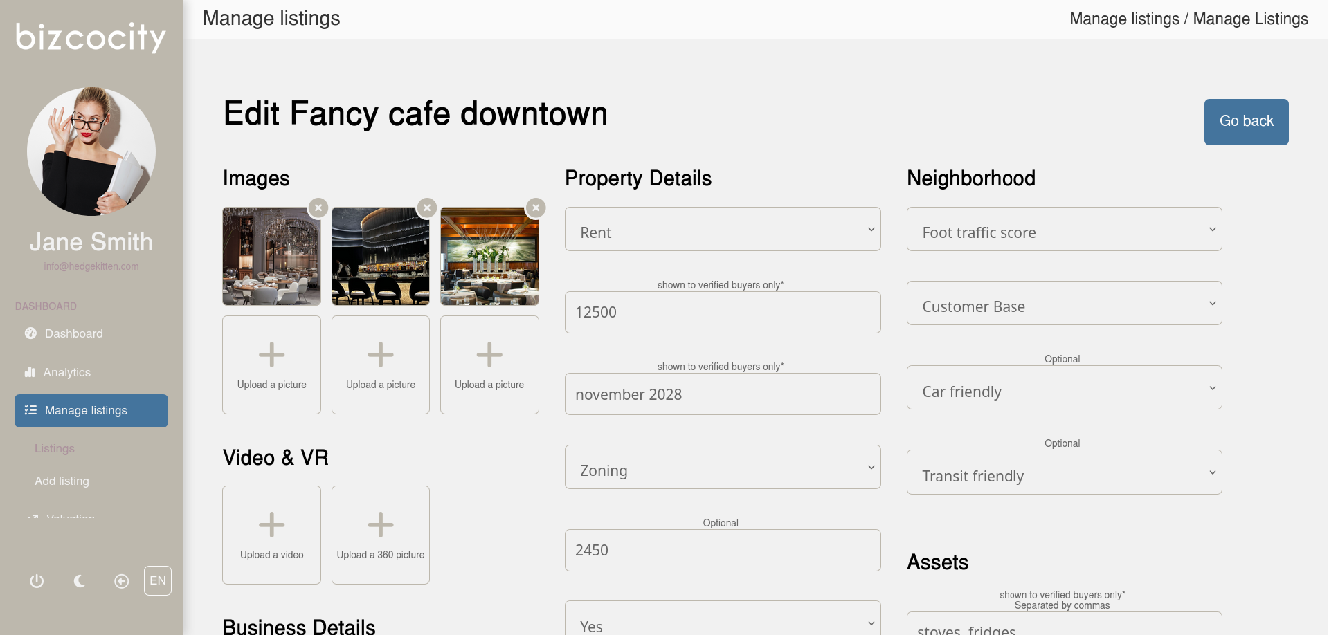 Creating a listing on Bizcocity just got a whole lot simpler and a whole lot better. We have fully overhauled the way listings are created with a brand new design and UX, making more intuitive while offering a broader range of features. We have added support for 360 vr images as well as video tours. Brokers can now provide more detailed business data which is kept private and only shared with qualified buyers through our messaging platform and only after they have signed a digital NDA.